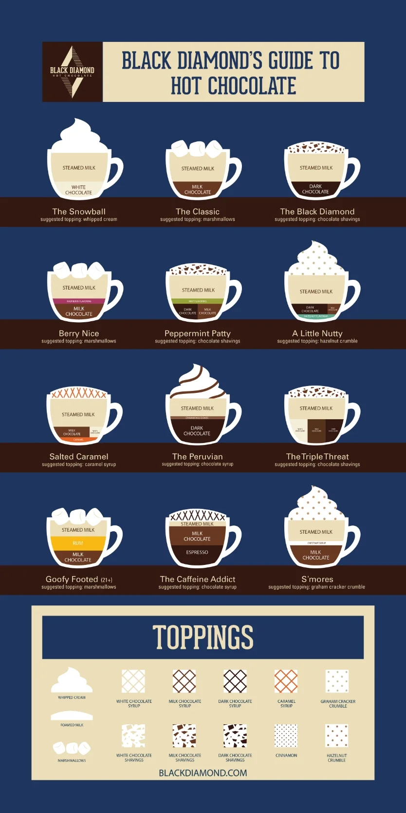 Black Diamond Hot Chocolate is a hot chocolate specialty store located in Vail, Colorado. With its high quality solid chocolate base and wide variety of customizable flavor options this is one rich and creamy cup of hot chocolate you will not want to miss out on.