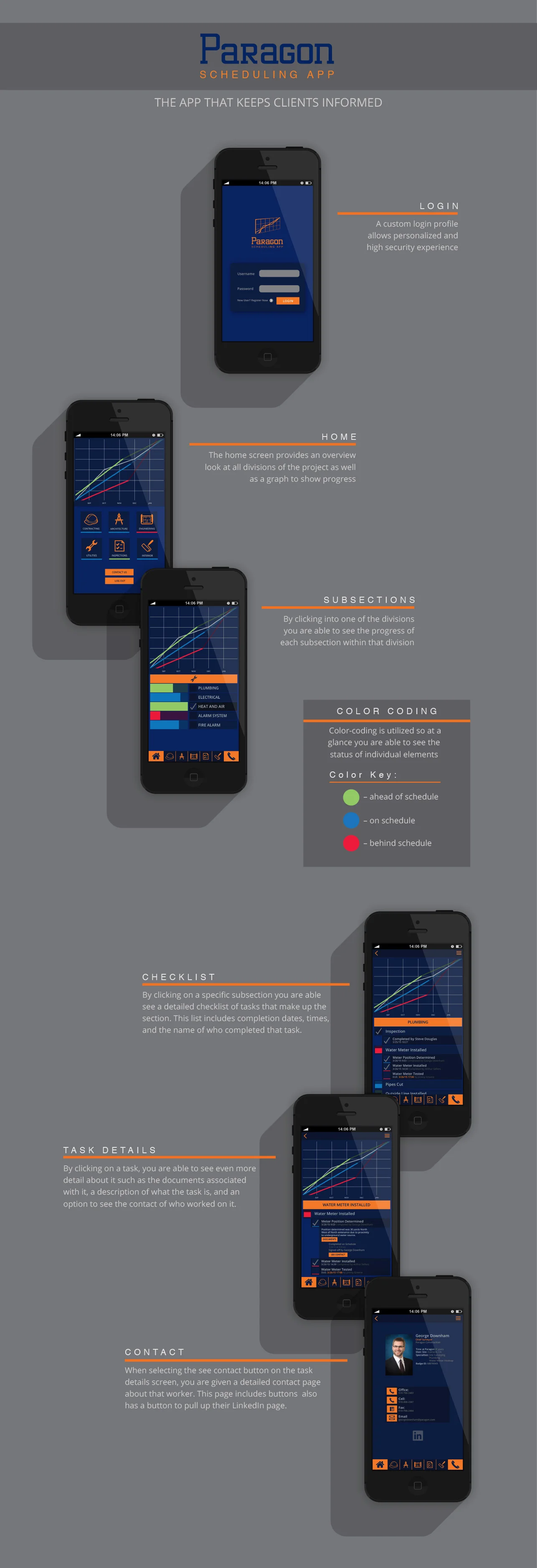 An app was developed for Paragon Construction in order to provide their high status clients with an easy way to keep updated on the status of their Paragon projects.